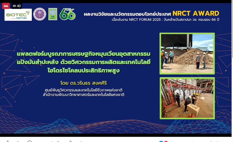 ไบโอเทค–มจธ. คว้ารางวัล NRCT Award 2025 จากงานวิจัยยกระดับอุตสาหกรรมแป้งมันสำปะหลังไทย